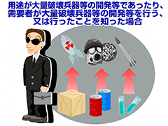 輸出(提供)しようとする貨物(技術)が、大量破壊兵器等の開発等に用いられるおそれがある場合に経済産業大臣の許可が必要になる制度です。