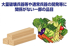 なお、食料品、木材等のおよそ大量破壊兵器等の開発等とは関係がないと考えられる一部の品目(技術)は16の項から除かれていることから、キャッチオール規制の対象ではありません。