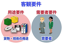 イ 客観要件・・・・・大量破壊兵器キャッチオール規制には、客観的な要件として用途要件と需要者要件があります。