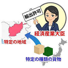 例:貨物の場合は、貨物が輸出される前までに経済産業大臣から輸出者宛(法人の場合 は、代表権者)に直接、当該貨物について輸出許可申請をするように文書等で連絡が あります。