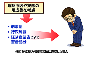 外為法違反の責任を問われるのは、規制対象である技術の提供や貨物の輸出を行う者であり、輸出手続を通関業者に依頼している場合であっても、依頼主が法的責任を問われることになります。